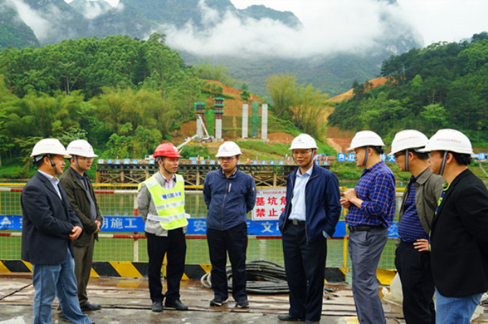 會(huì)后,李定倫率隊(duì)到都巴路控制性工程紅水河特大橋施工現(xiàn)場(chǎng)督導(dǎo)安全生產(chǎn)工作。